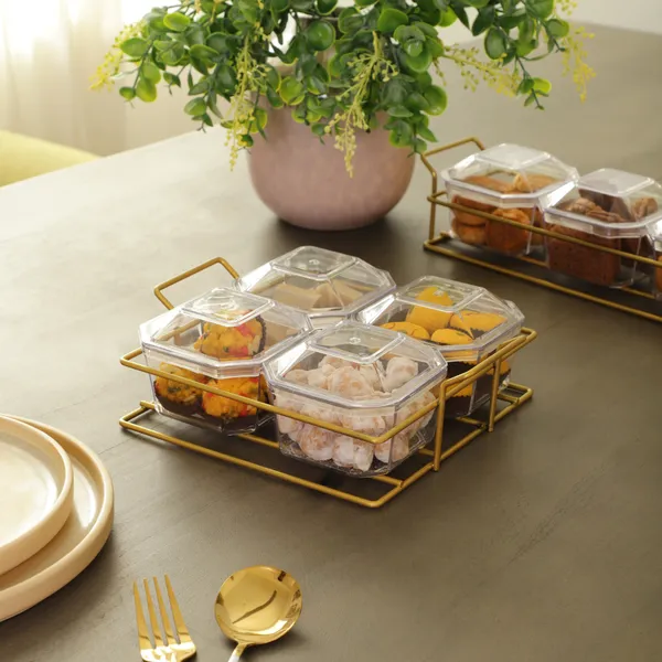 Serving Tray - Relish 4 Bowl Gold Tray